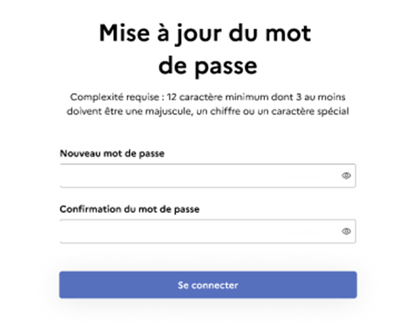 N.B. Votre mot de passe doit comporter au moins 12 caractères, dont 3 au moins doivent être une majuscule, un chiffre ou un caractère spécial.
