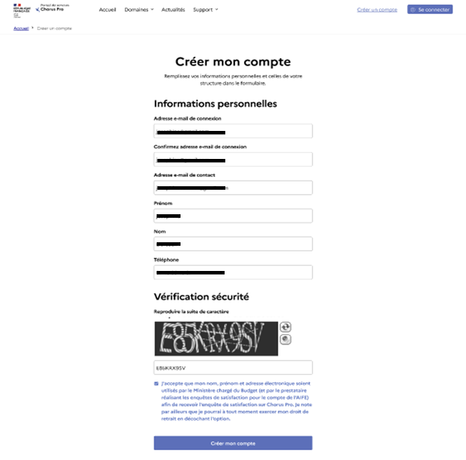 Bien comprendre le champ : « Adresse e-mail de contact » : cette boîte mail recevra les notifications envoyées par le portail de services. L’adresse mail de contact est par défaut l’adresse mail de connexion. Vous pouvez indiquer une adresse mail de contact différente si vous le souhaitez.
