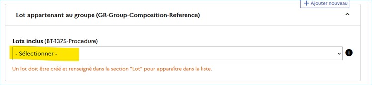 En raison d’une évolution en cours de développement, le pré remplissage du champ « Nature du marché BT-23-Lot » se fait pour le moment uniquement à partir du champ « Catégorie principale » de PLACE et non « Catégorie du Lot ».