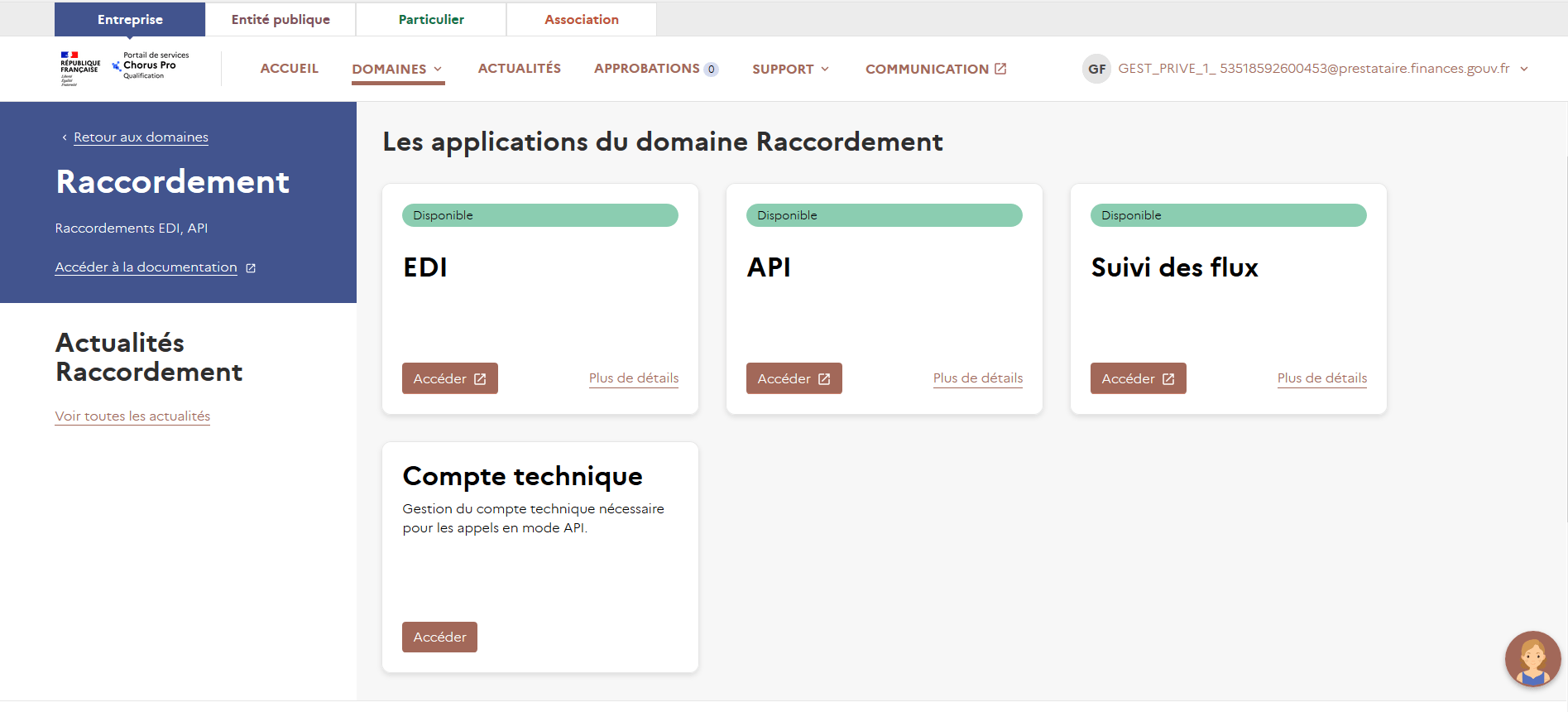 Ce guide précise les étapes de création d’un compte technique dans l’environnement de qualification pour un raccordement de la PA au PPF en mode API.